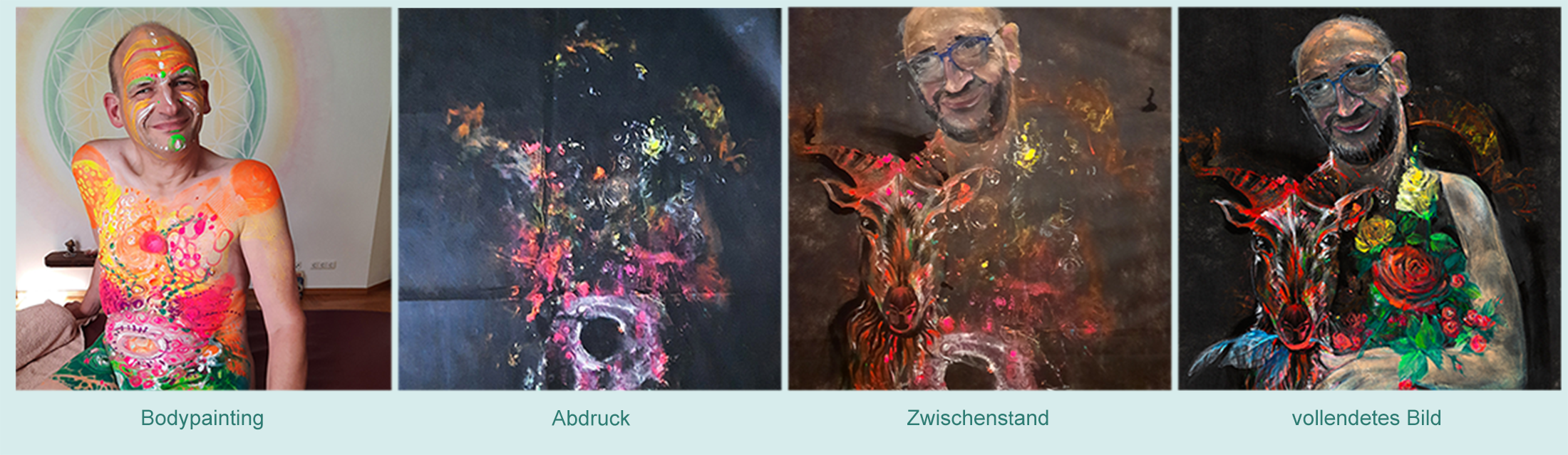 Ist es dann noch notwendig ein Massage-Painting abzuhalten? Denn es ist ja auch dafür da, ein Bild aus der jeweiligen Körperenergie frei entstehen zu lassen. Warum nicht auch mal so? Die Dinge entwickeln sich, auch die Paintings. Mit jedem Menschen.