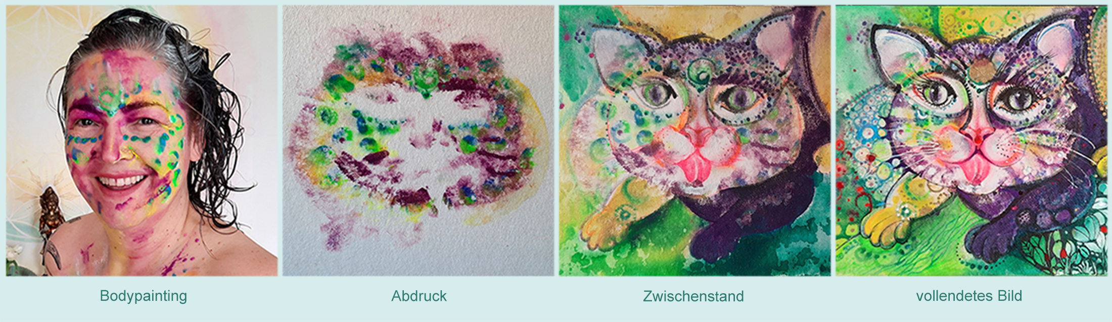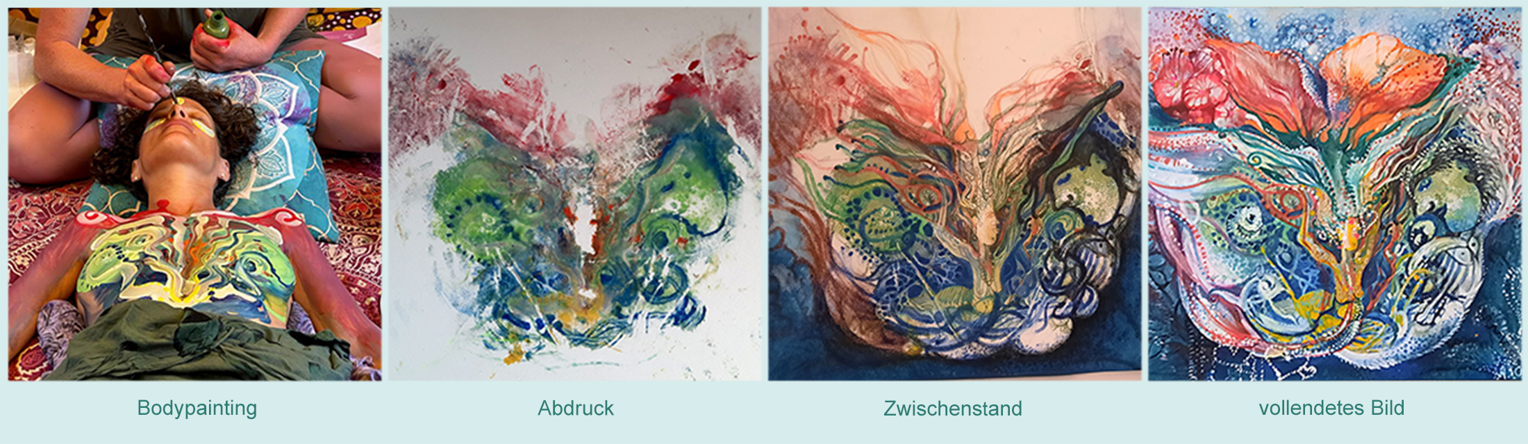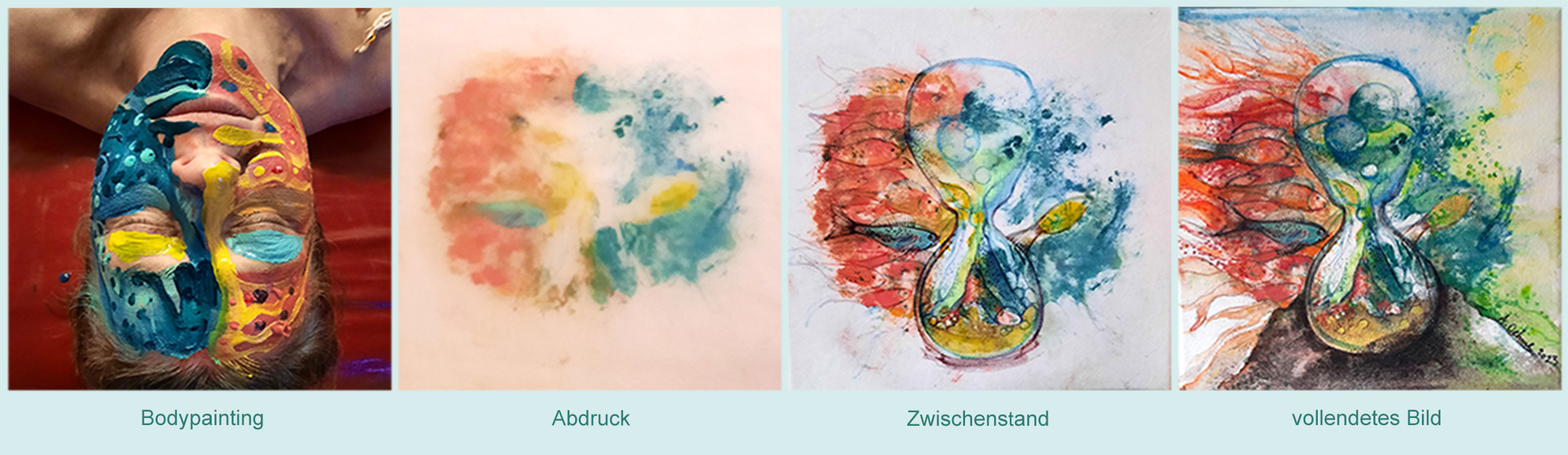 Die kleine Schwester vom Massage-Painting heißt: „Gesichts-Painting“. 🙂 Der Focus liegt bei der Massage auf Kopf/Gesicht und Dekolleté. Die Körpermalerei konzentriert sich ebenfalls auf diesen Bereich. Die daraus entstehenden Bilder sind demensprechend kleiner aber nicht weniger intensiv und detailreich.
